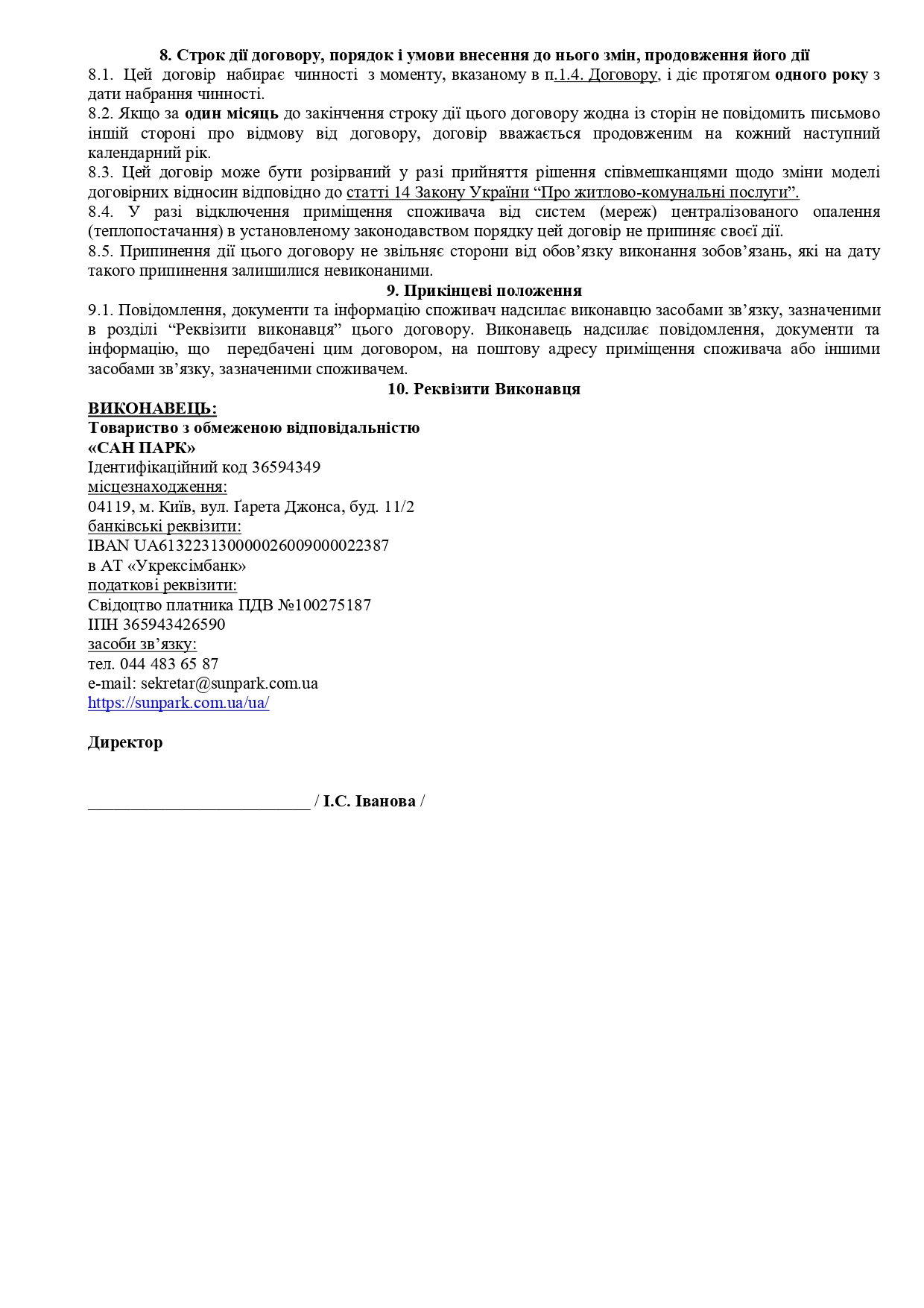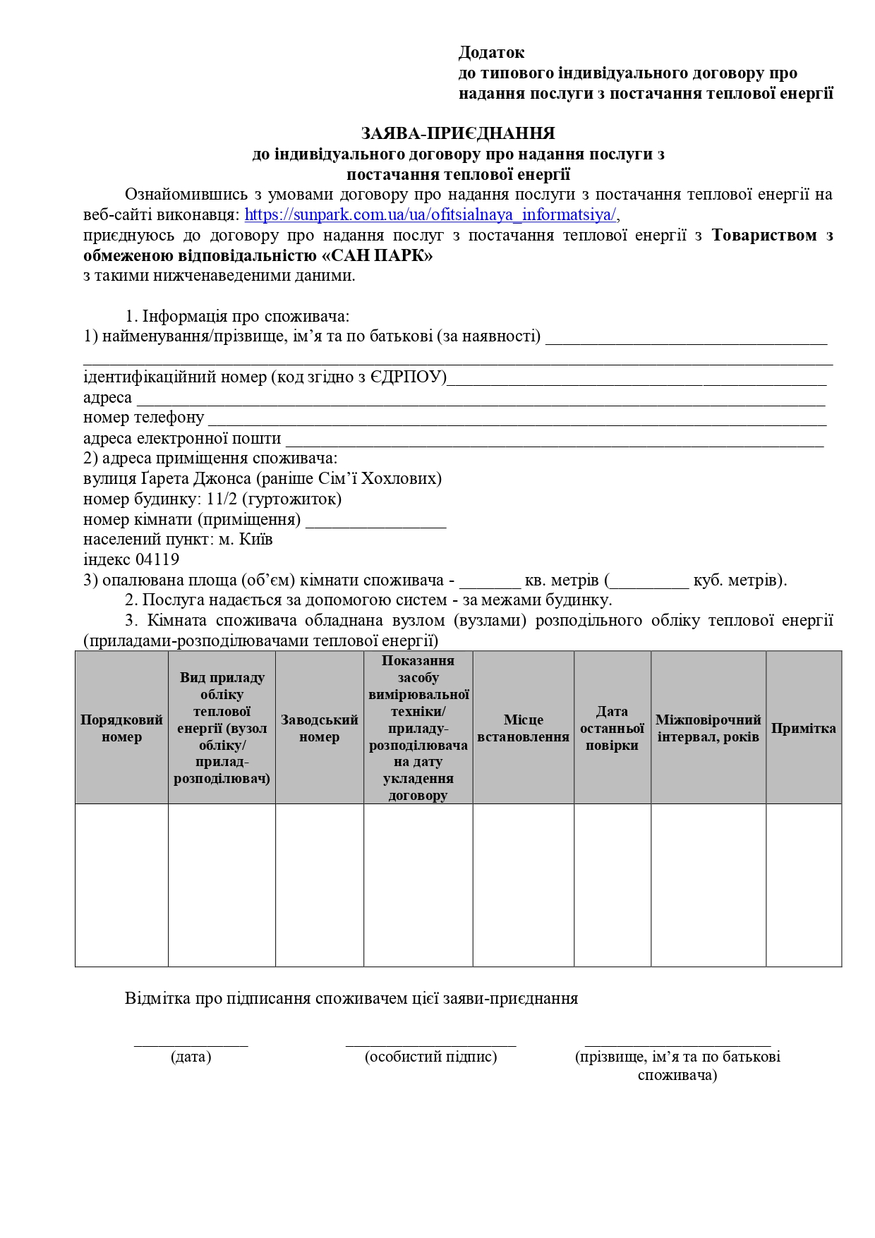 - послугу з централізованого опалення, що надає ТОВ «САН ПАРК» (зареєстровано 24.11.2016р. в ГТУЮ у місті Києві за №241/1557):